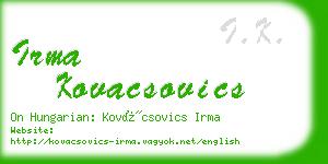 Welcome to IRMA KOVACSOVICS name analyzer. Attention - this page is analising the Irma Kovacsovics name, not the person named IRMA KOVACSOVICS!